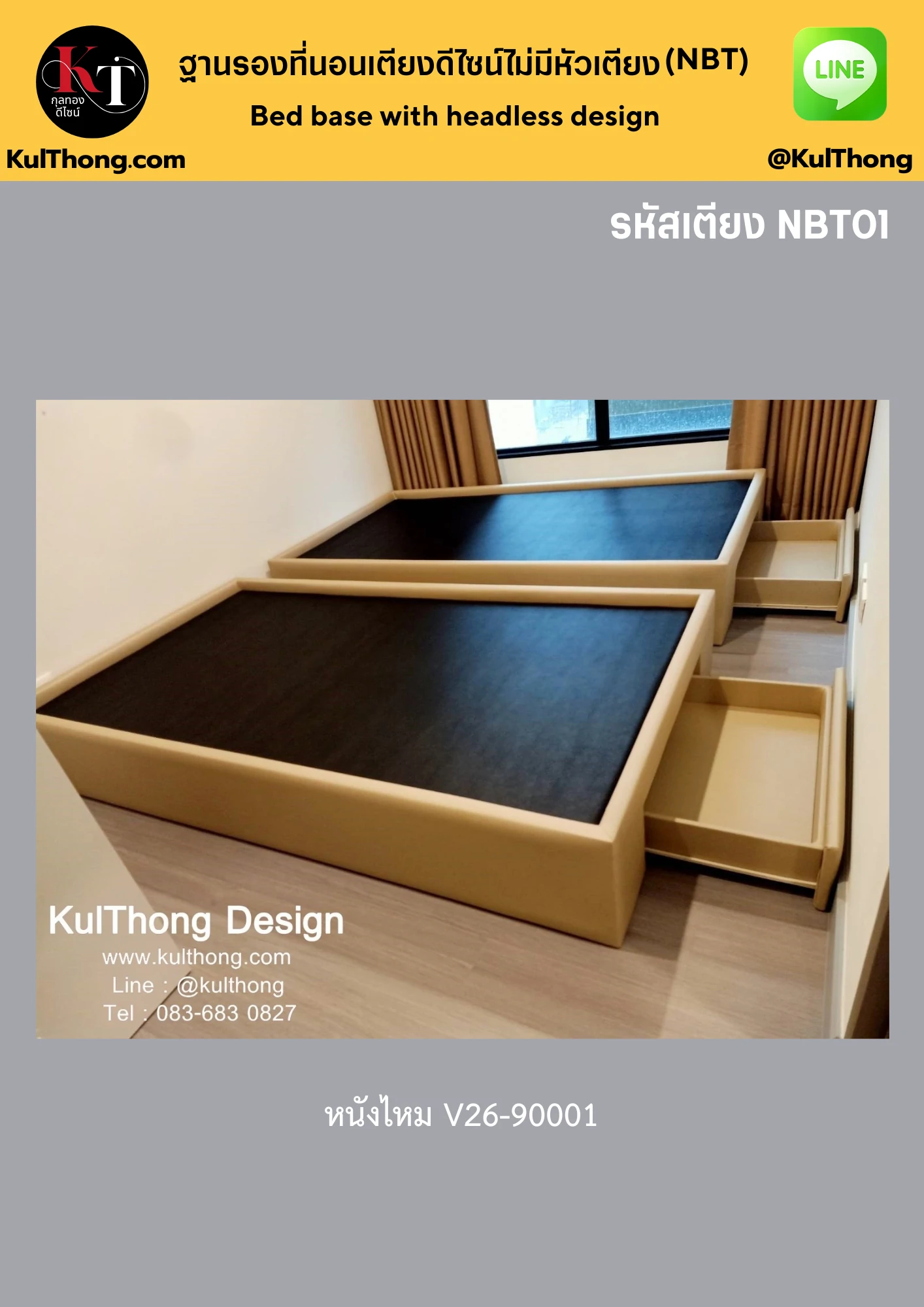 เตียง3.5ฟุตมีลิ้นชักหุ้มหนัง ฐานเตียงนอนมีลิ้นชัก 3.5 foot bed with leather-covered drawers NBT01 หุ้มหนังไหม V26-90001