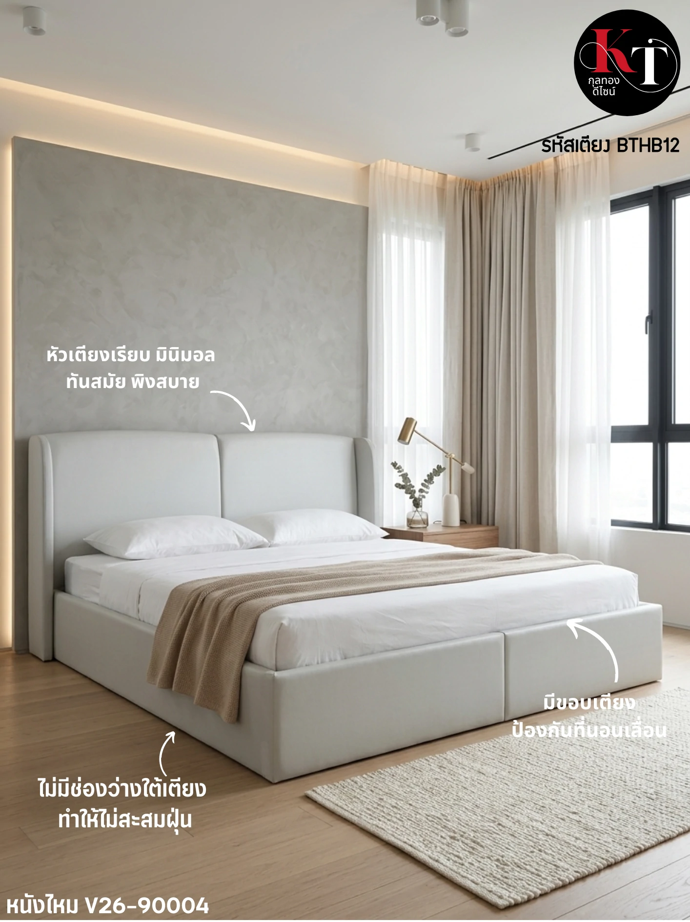 ฐานเตียงหุ้มหนัง6ฟุตมีหัวเตียง เตียงหุ้มผ้ามีหัวเตียง 6-foot leather-covered bed base with headboard BTHB12 หุ้มหนังไหม V26-90004